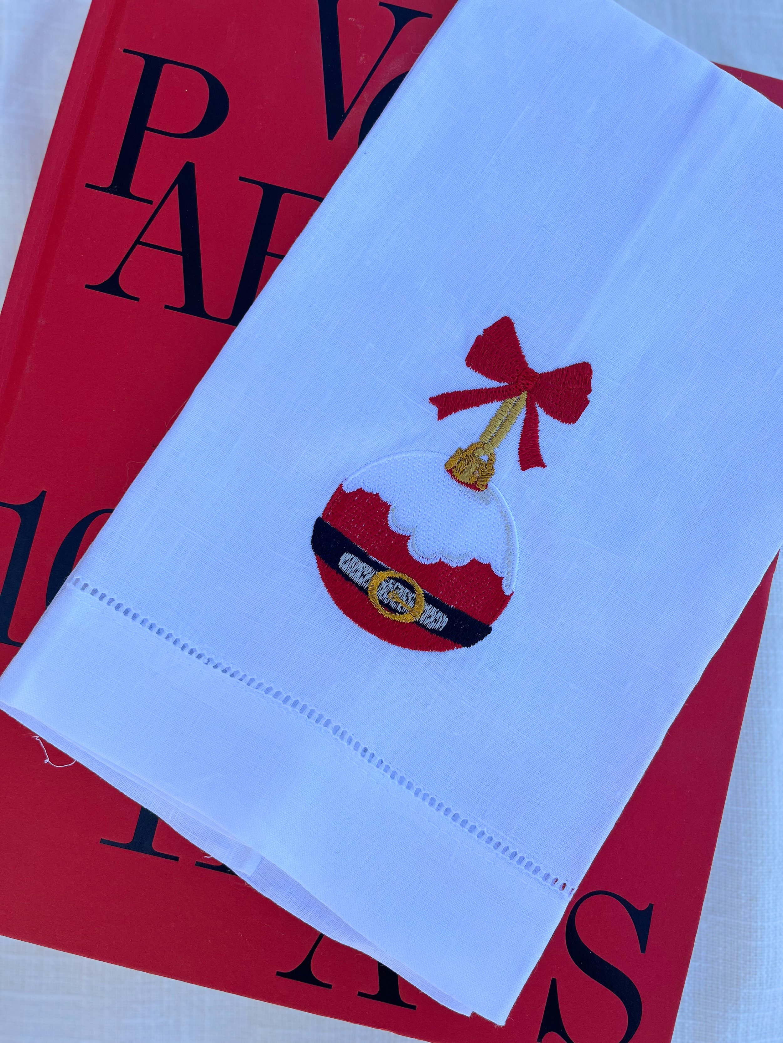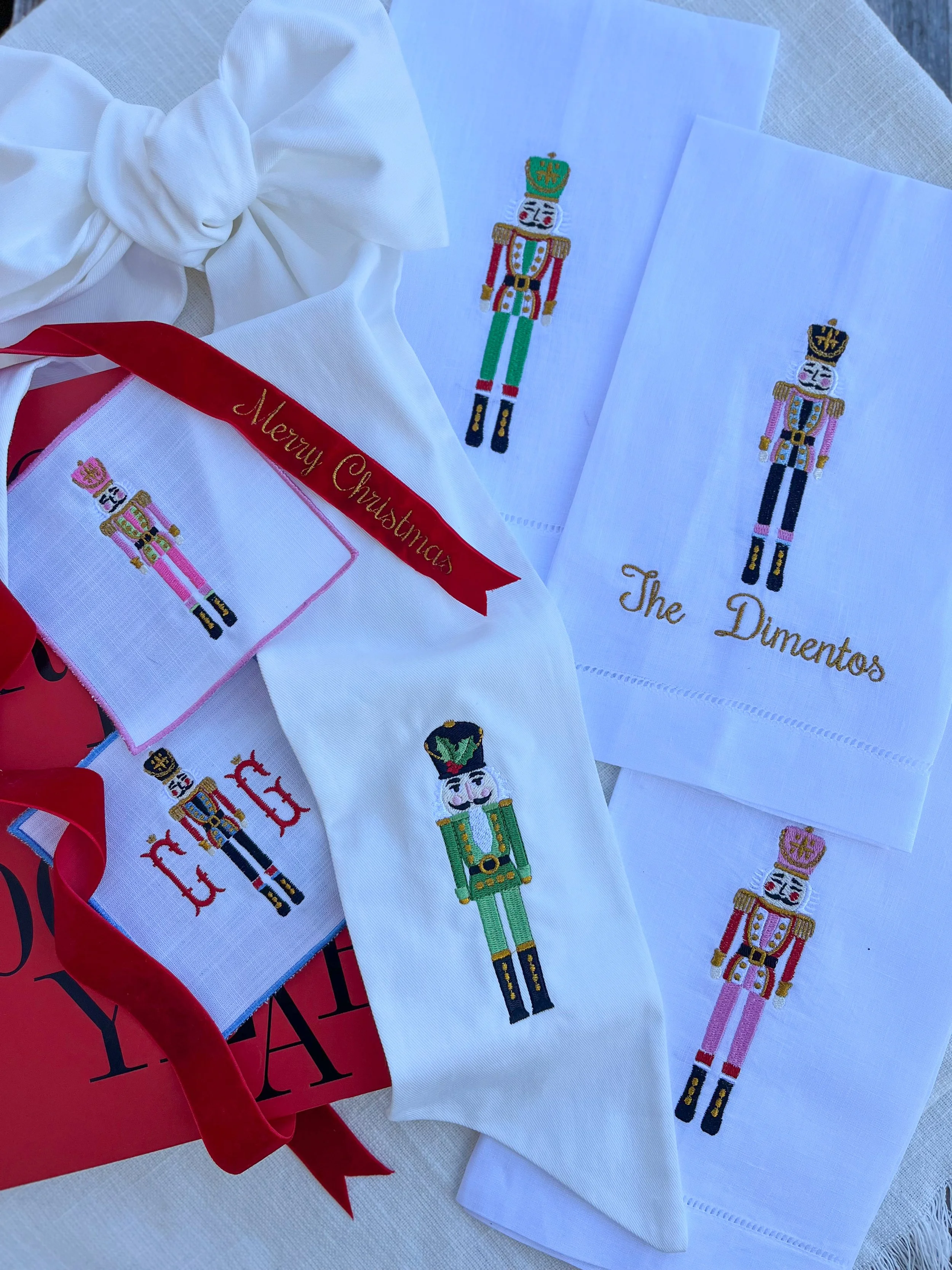 Towels Categories: All Tissue Box Cover Towels Wreath Sashes All / Towels Nutcracker Hand Towel from $25.00 Christmas Tree Hand Towel from $25.00 Pink Porcelain Tree Hand Towel from $25.00 Santa Claus Ornament Hand Towel from $25.00 Personalized Bath Towel Set from $20.00 Personalized Linen Hand Towel $32.00 Go Rebels Hand Towel $32.00